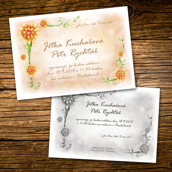 U pozvánek ke svatebnímu stolu je jednotná cena 10,- Kč za kus. Minimální odběr pozvánek je 10 ks. Pozvánka zpravidla odpovídá vybranému motivu svatebního oznámení.