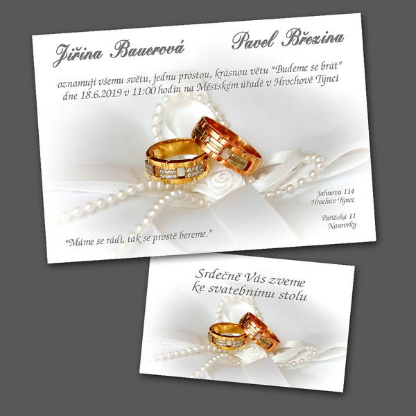U pozvánek ke svatebnímu stolu je jednotná cena 10,- Kč za kus. Minimální odběr pozvánek je 10 ks. Pozvánka zpravidla odpovídá vybranému motivu svatebního oznámení.